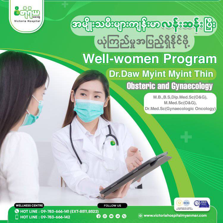 🔰 Dr. Daw Myint Myint Thin (Obstetric and Gynaecology Specialist), M.B., B.S., Dip. Med. Sc. (O&G), M. Med. Sc. (O&G), Dr. Med. Sc. (Gynaecologic Oncology) at Victoria Hospital Wellness Centre.