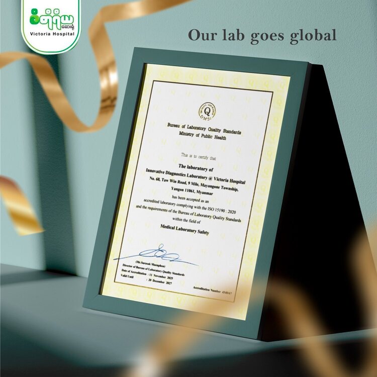In 2025, we proudly marked a historic achievement by becoming Myanmar’s first laboratory to receive the ISO 15189:2022 international accreditation for Clinical Pathology (histopathology/biopsy testing). This accomplishment reflects our strong commitment to excellence and our mission to support precise and reliable disease diagnosis and treatment.